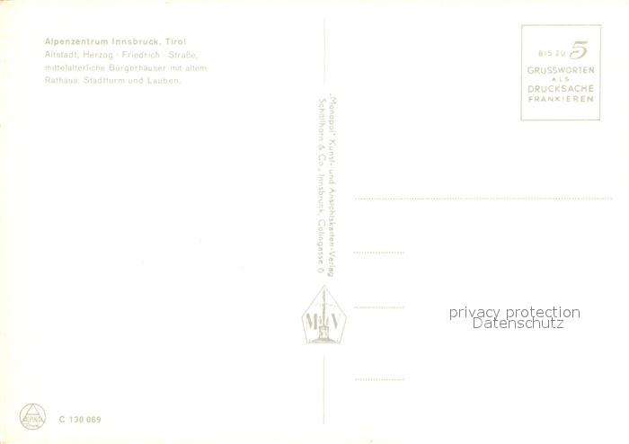 72941644 Innsbruck Altstadt Herzog Friedrich Str Buergerhaeuser Altes Rathaus Stadtturm postalisch nicht gelaufen Erhaltung siehe scans [WerneD78] KatCode: 11390332070101