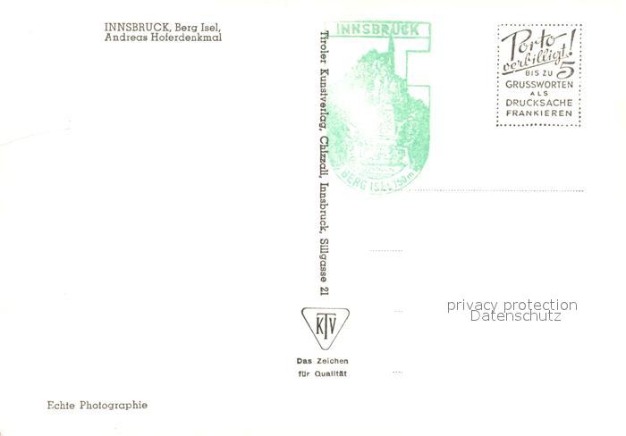 73098528 Innsbruck Berg Isel Andreas Hoferdenkmal postalisch nicht gelaufen Erhaltung siehe scans [KathaD81] KatCode: 11390332070101