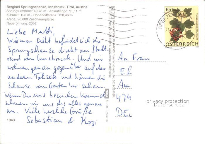 71950966 alte Postkarte Innsbruck Bergisel Sprungschanze postalisch gelaufen Erhaltung siehe scans KatCode: 11390332070101