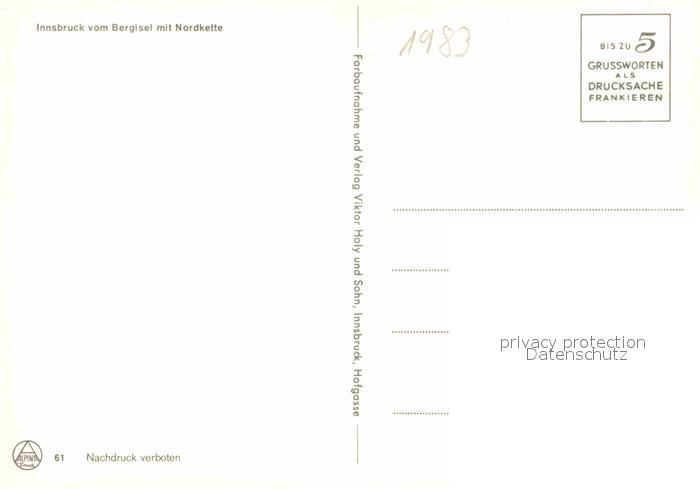 72862693 Innsbruck Blick vom Bergisel mit Nordkette postalisch nicht gelaufen Erhaltung siehe scans [WerneD78] KatCode: 11390332070101