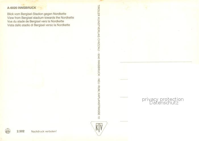 73714558 Innsbruck Blick vom Bergisel Stadion mit Nordkette postalisch nicht gelaufen Erhaltung siehe scans [WerneD78] KatCode: 11390332070101