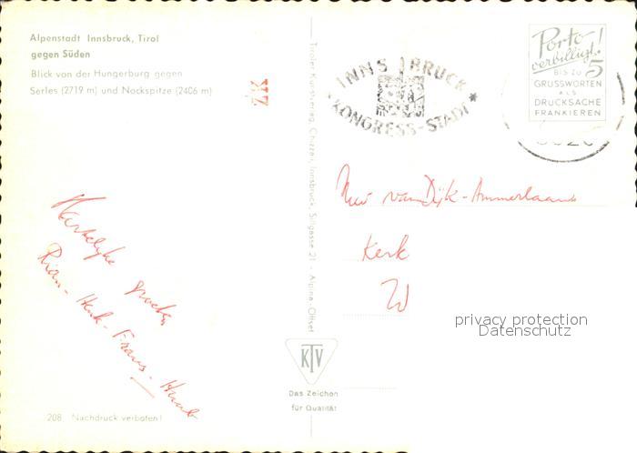 72466451 alte Postkarte Innsbruck Blick von der Hungerburg mit Serles und Nockspitze postalisch gelaufen Erhaltung siehe scans KatCode: 11390332070101