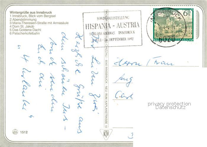 73143793 alte Postkarte Innsbruck Blick zum Berg Isel Abendstimmung Annasaeule Dom Goldenes Dach Patscherkofelbahn postalisch gelaufen Erhaltung siehe scans [FriedD77] KatCode: 11390332070101