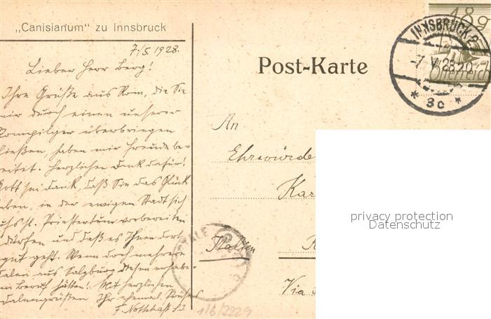 43112690 alte Postkarte Innsbruck Canisianum postalisch gelaufen Erhaltung siehe scans [FriedD77] KatCode: 11390332070101