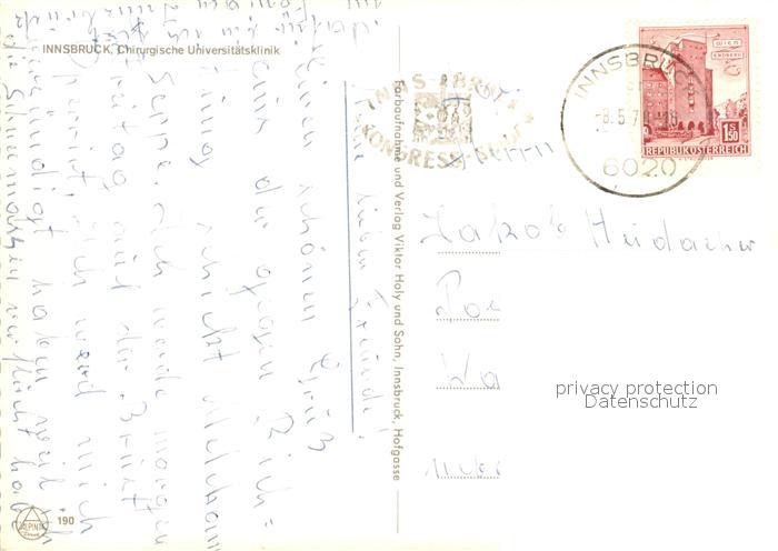 73167053 alte Postkarte Innsbruck Chirurgische Universitaetslinik postalisch gelaufen Erhaltung siehe scans [WerneD78] KatCode: 11390332070101