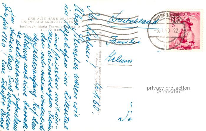 73021302 alte Postkarte Innsbruck Espresso-Bar Delevo postalisch gelaufen Erhaltung siehe scans [NatalD47] KatCode: 11390332070101