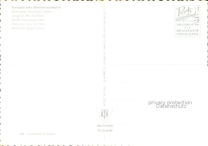 72283547 Innsbruck Europabruecke Brennerautobahn Nockspitze Stubaier Alpen postalisch nicht gelaufen Erhaltung siehe scans KatCode: 11390332070101