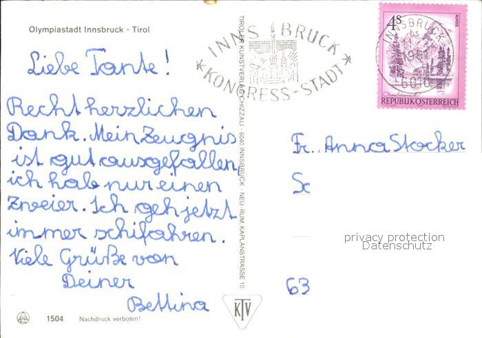 72350989 alte Postkarte Innsbruck Europabruecke Goldenes Dachl Olympia- Eisstadion postalisch gelaufen Erhaltung siehe scans KatCode: 11390332070101