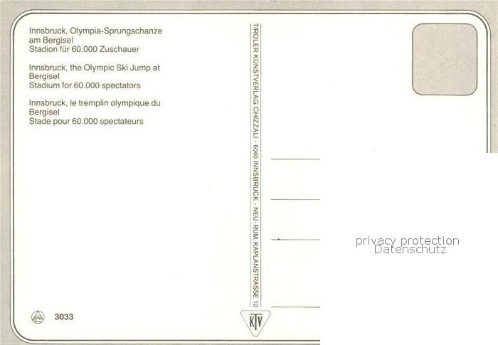 73168761 Innsbruck Fliegeraufnahme Bergisel Olympiaschanze postalisch nicht gelaufen Erhaltung siehe scans [KathaD81] KatCode: 11390332070101