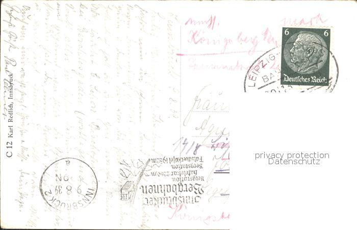 72298103 alte Postkarte Innsbruck Fliegeraufnahme mit Brandjoch Sattelspitzen und Seegrubenspitzen postalisch gelaufen Erhaltung siehe scans KatCode: 11390332070101