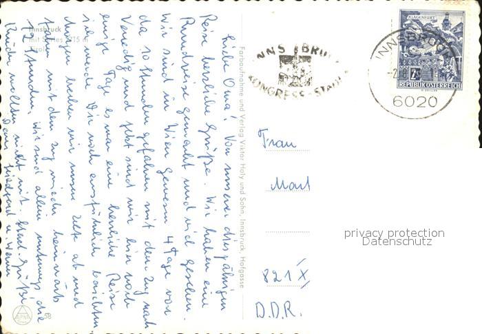 72409759 alte Postkarte Innsbruck Fliegeraufnahme mit Serles postalisch gelaufen Erhaltung siehe scans KatCode: 11390332070101