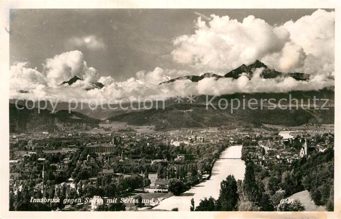 72990663 alte Postkarte Innsbruck Fliegeraufnahme mit Serles postalisch gelaufen Erhaltung siehe scans [LiesaD40] KatCode: 11390332070101