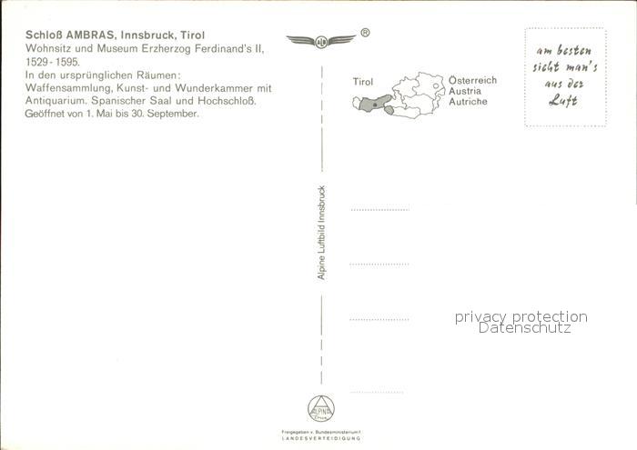 72615408 Innsbruck Fliegeraufnahme Schloss Ambras postalisch nicht gelaufen Erhaltung siehe scans [LiesaD40] KatCode: 11390332070101