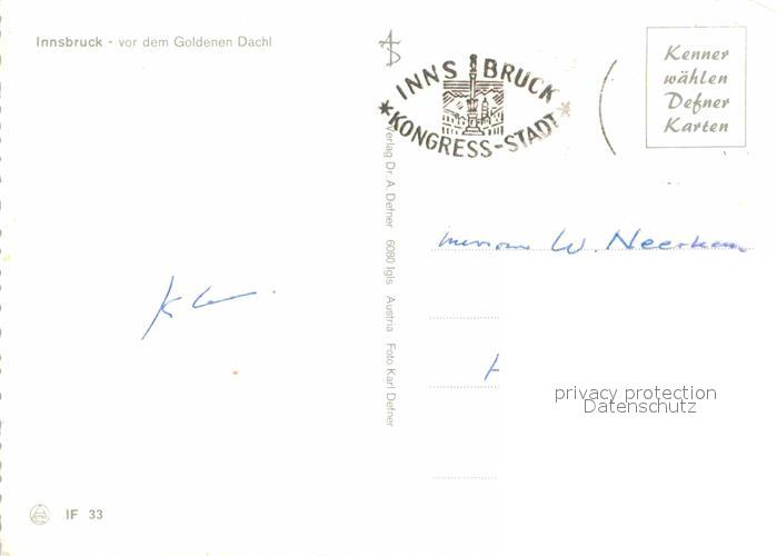 72662756 alte Postkarte Innsbruck Goldenen Dachl postalisch gelaufen Erhaltung siehe scans [AndreD76] KatCode: 11390332070101