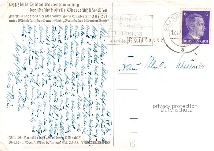 43037220 alte Postkarte Innsbruck Goldenes Dachl Offzielle Bildpostkartensammlung der oesterreichhilfe Bild 16 Kuenstlerkarte postalisch gelaufen Erhaltung siehe scans [FriedD77] KatCode: 11390332070101