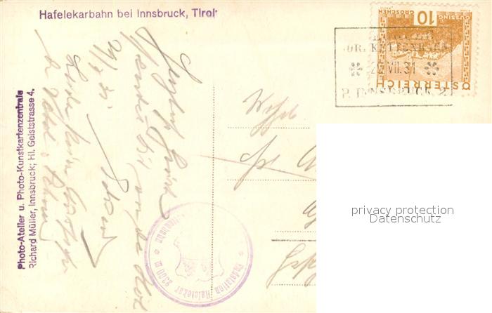 43055269 alte Postkarte Innsbruck Hafelekarbahn Grossvenediger postalisch gelaufen Erhaltung siehe scans [FriedD77] KatCode: 11390332070101