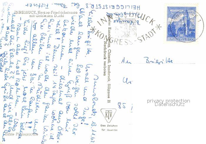 72770956 alte Postkarte Innsbruck Herzog-Friedrichstrasse Goldene Dachl postalisch gelaufen Erhaltung siehe scans [NatalD47] KatCode: 11390332070101