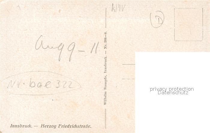 43242605 alte Postkarte Innsbruck Herzog Friedrichstrasse Kuenstlerkarte postalisch gelaufen Erhaltung siehe scans [WerneD78] KatCode: 11390332070101