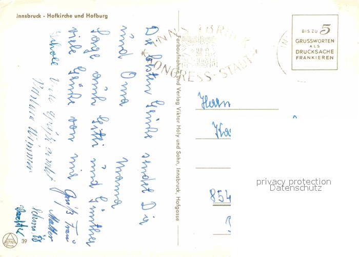 72743175 alte Postkarte Innsbruck Hofkirche und Hofburg Brunnen postalisch gelaufen Erhaltung siehe scans [FriedD77] KatCode: 11390332070101