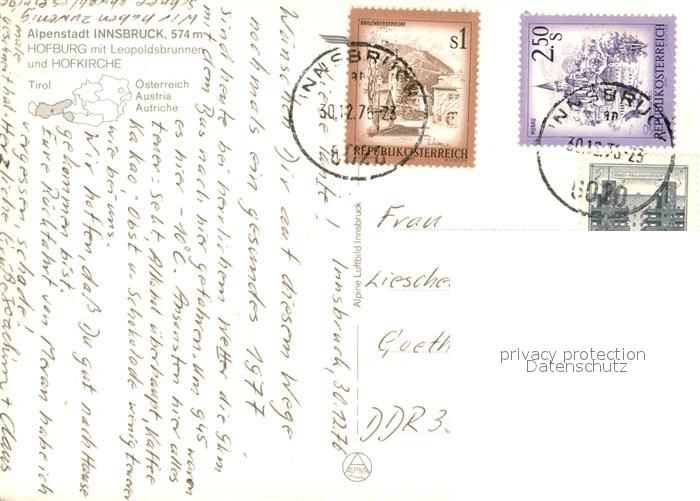 73022510 alte Postkarte Innsbruck Hofkirche und Hofburg postalisch gelaufen Erhaltung siehe scans [WerneD78] KatCode: 11390332070101