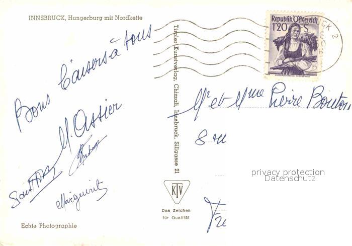 72869427 alte Postkarte Innsbruck Hungerburg Nordkette postalisch gelaufen Erhaltung siehe scans [NatalD47] KatCode: 11390332070101