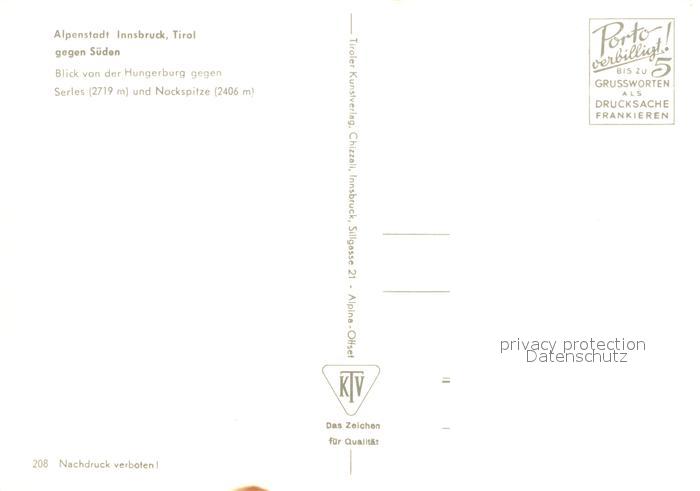 73027918 Innsbruck Hungerburg Serles Nockspitze postalisch nicht gelaufen Erhaltung siehe scans [PaolaD17] KatCode: 11390332070101