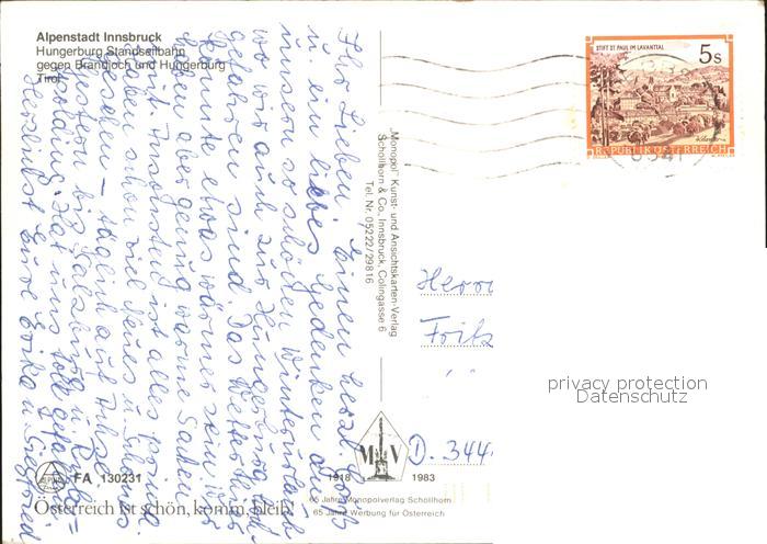 71909171 alte Postkarte Innsbruck Hungerburg Standseilbahn postalisch gelaufen Erhaltung siehe scans KatCode: 11390332070101