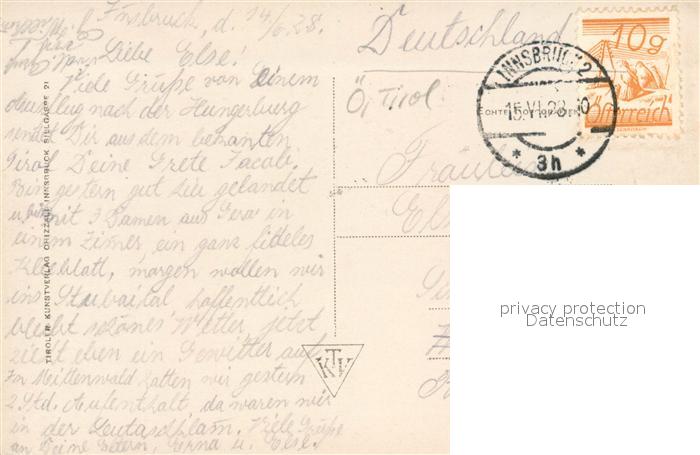 43243206 alte Postkarte Innsbruck Hungerburgbahn postalisch gelaufen Erhaltung siehe scans [WerneD78] KatCode: 11390332070101