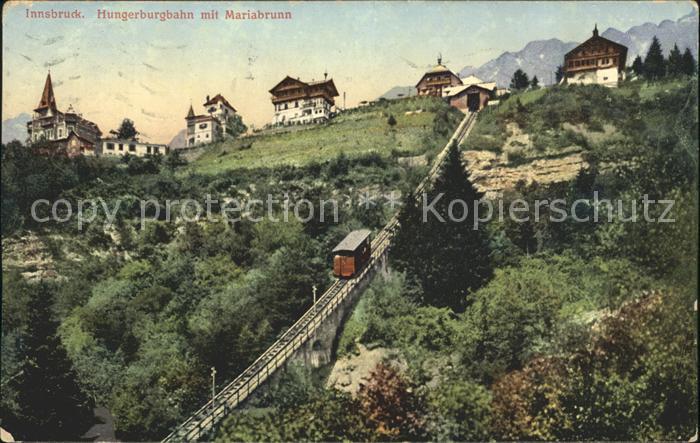11999191 alte Postkarte Innsbruck Hungerburgbahn mit Mariabrunn Bergbahn postalisch gelaufen KatCode: 11390332070101