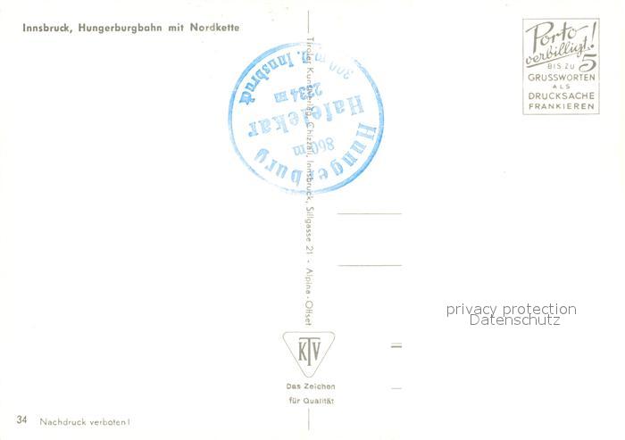 73093796 Innsbruck Hungerburgbahn Nordkette postalisch nicht gelaufen Erhaltung siehe scans [KathaD81] KatCode: 11390332070101