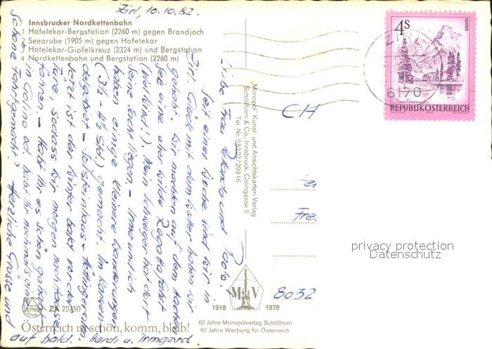 71708947 alte Postkarte Innsbruck Innsbrucker Nordkettenbahn Bergstation Gipfelkreuz Wappen postalisch gelaufen Erhaltung siehe scans KatCode: 11390332070101