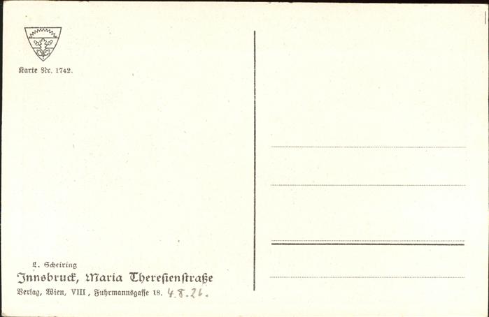 71059214 Innsbruck Maria Theresienstrasse Kuenstler L Scheiring Strassenbahn postalisch nicht gelaufen KatCode: 11390332070101