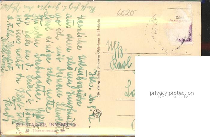 71545092 alte Postkarte Innsbruck Maria Theresienstrasse Saeule Strassenbahn postalisch gelaufen Erhaltung siehe scans KatCode: 11390332070101