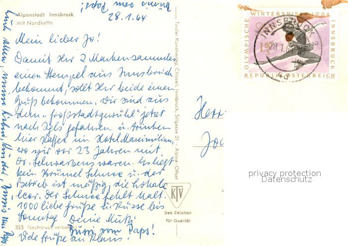 73030394 alte Postkarte Innsbruck mit Nordkette postalisch gelaufen Erhaltung siehe scans [WerneD78] KatCode: 11390332070101