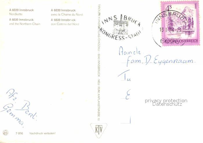 72889342 alte Postkarte Innsbruck mit Nordkette postalisch gelaufen Erhaltung siehe scans [WerneD78] KatCode: 11390332070101