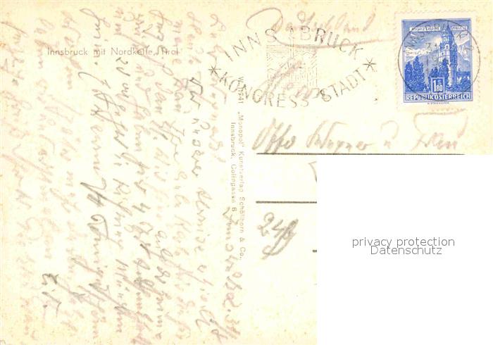 72820289 alte Postkarte Innsbruck mit Nordkette Karwendelgebirge Fliegeraufnahme postalisch gelaufen Erhaltung siehe scans [FriedD77] KatCode: 11390332070101