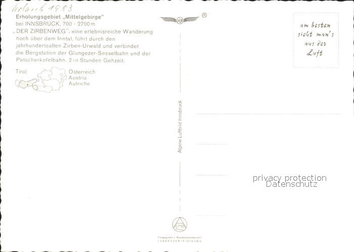 72290161 Innsbruck Mittelgebirge Zirbenweg postalisch nicht gelaufen Erhaltung siehe scans KatCode: 11390332070101