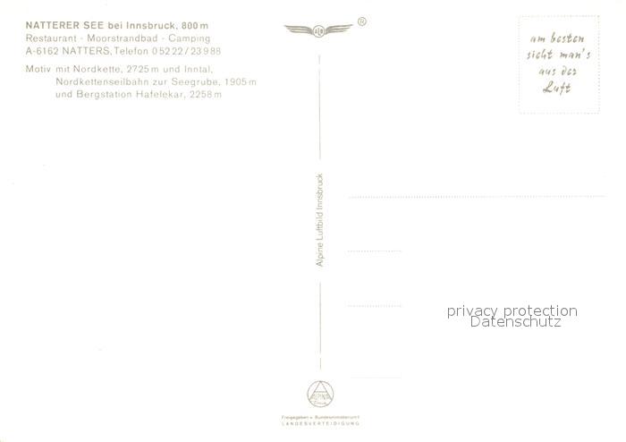73245816 Innsbruck Natterer See Campingplatz Nordkette Inntal Nordkettenseilbahn zur Seegrube Bergstation Hafelekar Fliegeraufnahme postalisch nicht gelaufen Erhaltung siehe scans [FriedD77] KatCode: 11390332070101
