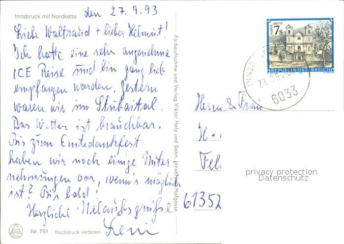 72433375 alte Postkarte Innsbruck Nordkette postalisch gelaufen Erhaltung siehe scans KatCode: 11390332070101