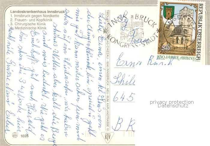 73131444 alte Postkarte Innsbruck Nordkette Landeskrankenhaus postalisch gelaufen Erhaltung siehe scans [NatalD47] KatCode: 11390332070101