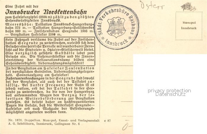 43243211 Innsbruck Nordketten Hafelekar Seilschwebebahn postalisch nicht gelaufen Erhaltung siehe scans [WerneD78] KatCode: 11390332070101