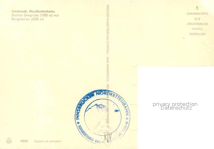 73238364 Innsbruck Nordkettenbahn Bergstation Seegrube postalisch nicht gelaufen Erhaltung siehe scans [WerneD78] KatCode: 11390332070101