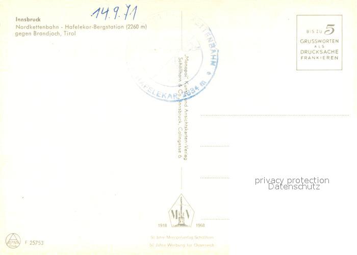 73355305 Innsbruck Nordkettenbahn Hafelekar Bergstation mit Brandjoch postalisch nicht gelaufen Erhaltung siehe scans [WerneD78] KatCode: 11390332070101
