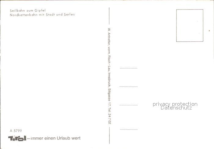 71899617 Innsbruck Nordkettenbahn mit Stadt und Serles postalisch nicht gelaufen Erhaltung siehe scans KatCode: 11390332070101