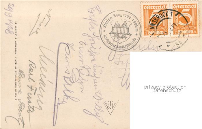 43055317 alte Postkarte Innsbruck Nordkettenbahn Station Seegrube postalisch gelaufen Erhaltung siehe scans [FriedD77] KatCode: 11390332070101