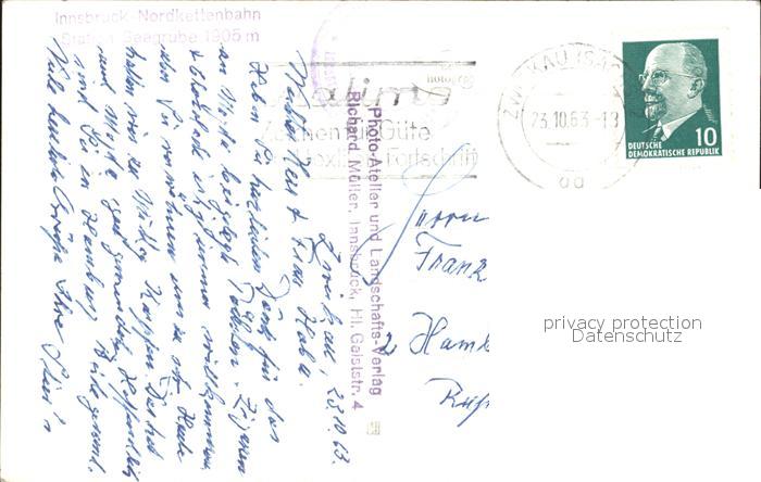 72385983 alte Postkarte Innsbruck Nordkettenbahn Station Seegrube postalisch gelaufen Erhaltung siehe scans KatCode: 11390332070101