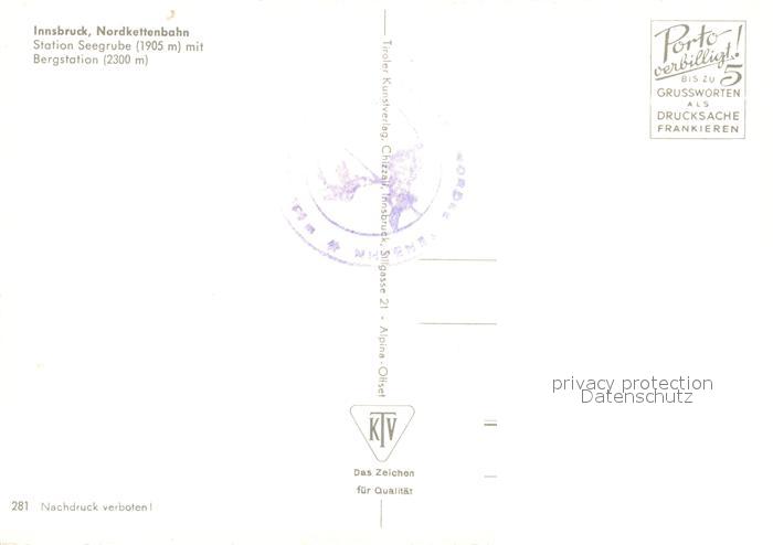 73091847 Innsbruck Nordkettenbahn Station Seegrube Bergstation postalisch nicht gelaufen Erhaltung siehe scans [KathaD81] KatCode: 11390332070101