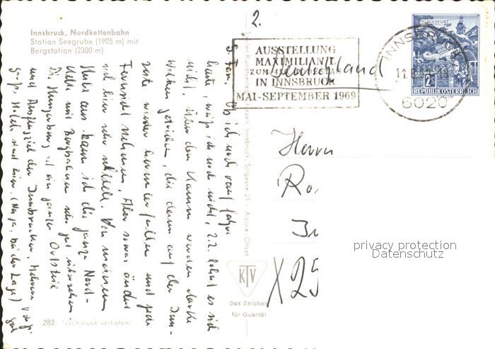 71907381 alte Postkarte Innsbruck Nordkettenbahn Station Seegrube Bergstation postalisch gelaufen Erhaltung siehe scans KatCode: 11390332070101