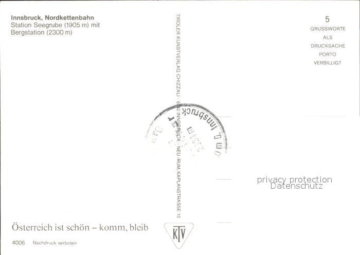 71812641 Innsbruck Nordkettenbahn Station Seegrube mit Bergstation postalisch nicht gelaufen Erhaltung siehe scans KatCode: 11390332070101