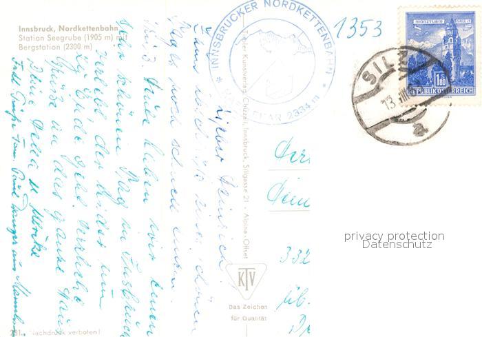 73363625 alte Postkarte Innsbruck Nordkettenbahn Station Seegrupe Bergstation postalisch gelaufen Erhaltung siehe scans [FriedD77] KatCode: 11390332070101